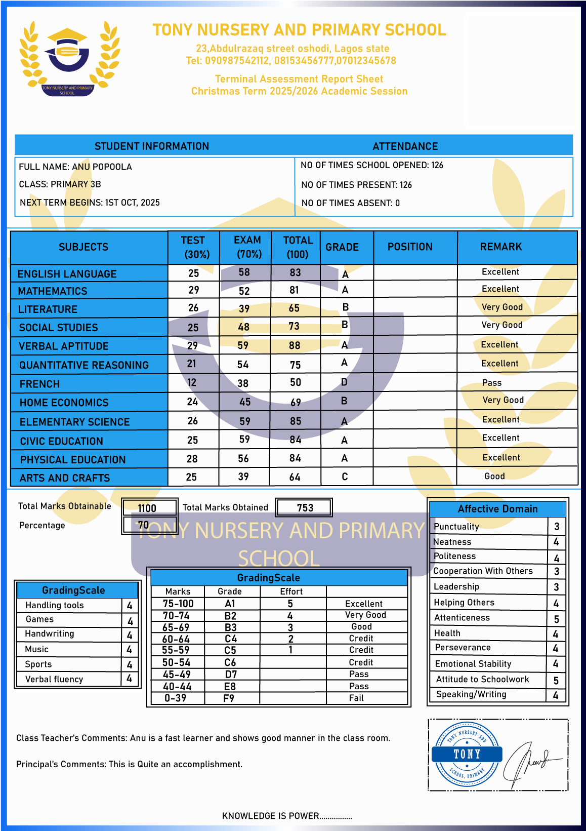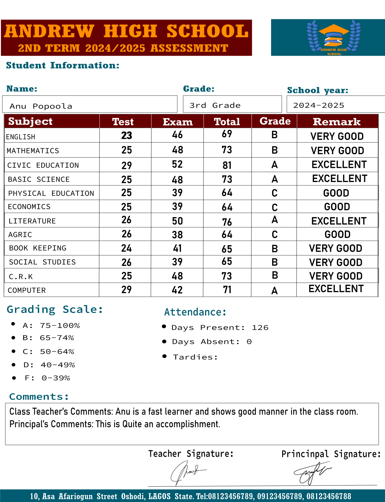 With the seamless automation in our solutions, The hazzles of results computing is eliminated. The flexibility to choose a template that aligns with your school is possible. Choose ReportCard Academy.